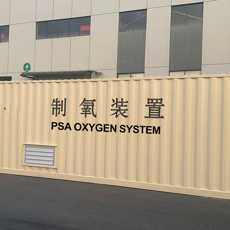 40Nm3/h集装箱式制氧机由螺杆空压机+PSA制氧机系统橇+无油制氧机+充氧排组成。
